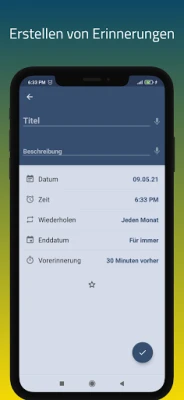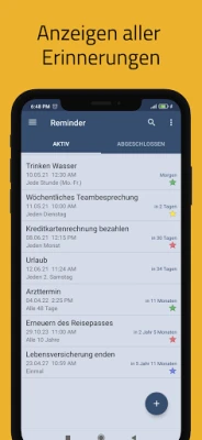 Vergessen Sie das Gefühl, von einer Flut an Terminen, Aufgaben und wichtigen Daten überwältigt zu sein. Die App Reminder wurde entwickelt, um Ihr Leben mühelos zu organisieren und Ihren Kopf frei zu halten. Mit ihrer intuitiven Benutzeroberfläche können Sie in Sekundenschnelle präzise Benachrichtigungen für alles einstellen, was Ihnen wichtig ist. Reminder ist nicht nur eine einfache Erinnerungsfunktion; es ist Ihr persönlicher Assistent, der dafür sorgt, dass Sie stets den Überblick behalten und Fristen spielend leicht einhalten. Erleben Sie, wie tausende Nutzer bereits von der Einfachheit und Effektivität von Reminder profitieren.