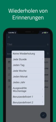 Die Flexibilität von Reminder geht weit über einfache einmalige Benachrichtigungen hinaus. Profitieren Sie von individuellen, wiederkehrenden Erinnerungen, einer praktischen Schlummerfunktion und Popup-Benachrichtigungen, die Sie gezielt erreichen. Verwalten Sie Ihre Erinnerungen bequem mit einem Widget, erhalten Sie eine tägliche Zusammenfassung oder nutzen Sie die vorausschauenden Erinnerungen, um stets einen Schritt voraus zu sein. Mit verschiedenen Themen, einer leistungsstarken Suchfunktion und anpassbaren Kategorien mit Farben passt sich Reminder perfekt Ihrem Stil und Ihren Anforderungen an, während automatische Backups Ihre Daten sicher halten und multiple Ansichtsoptionen für perfekte Übersicht sorgen.
